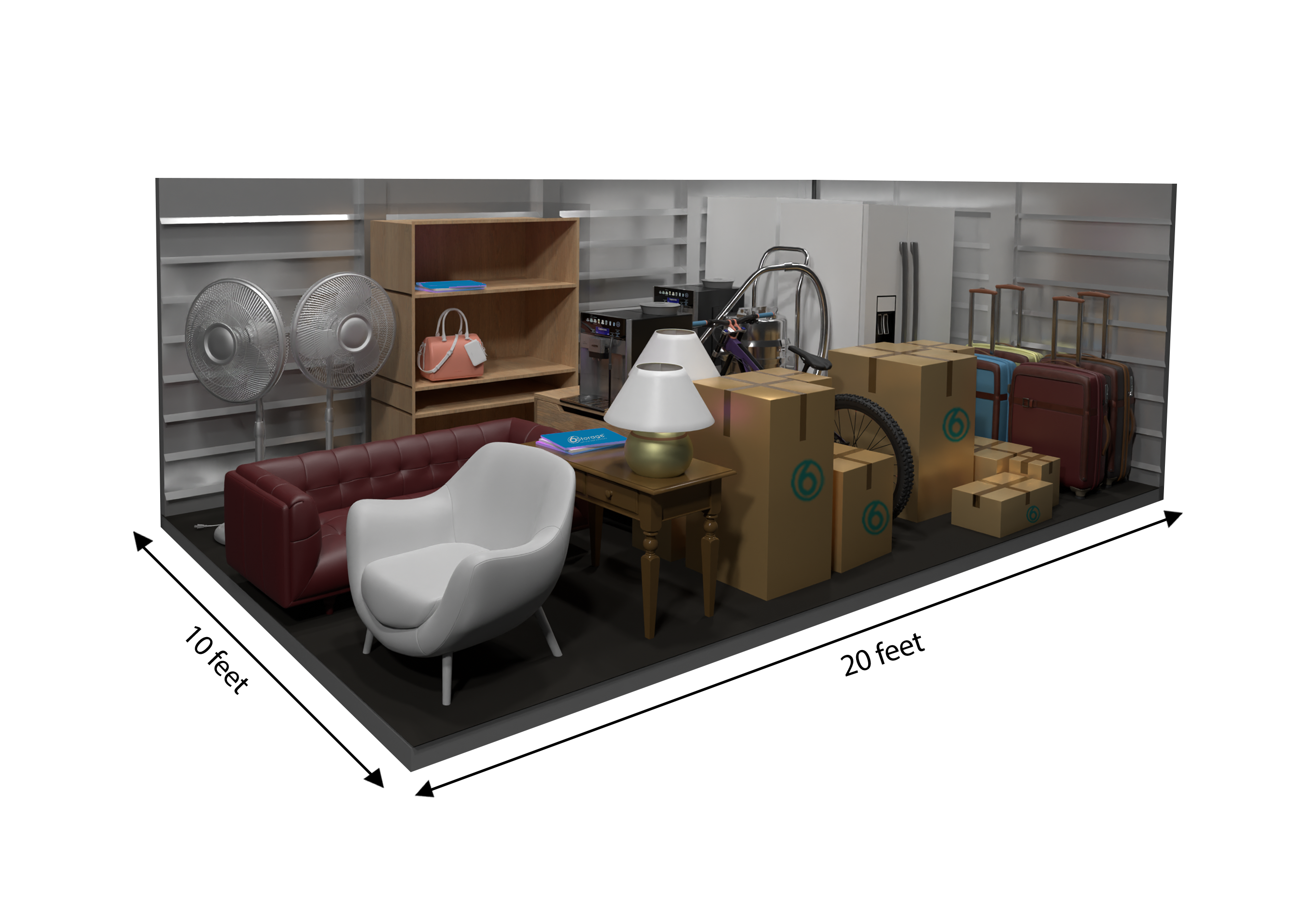 Our 10×20 unit is about the size of a standard one-car garage-roughly 200 sq ft. They can typically hold the contents of a 3-4 bedroom home, large furniture sets, major appliances, 20-30 medium to large boxes plus loose items.